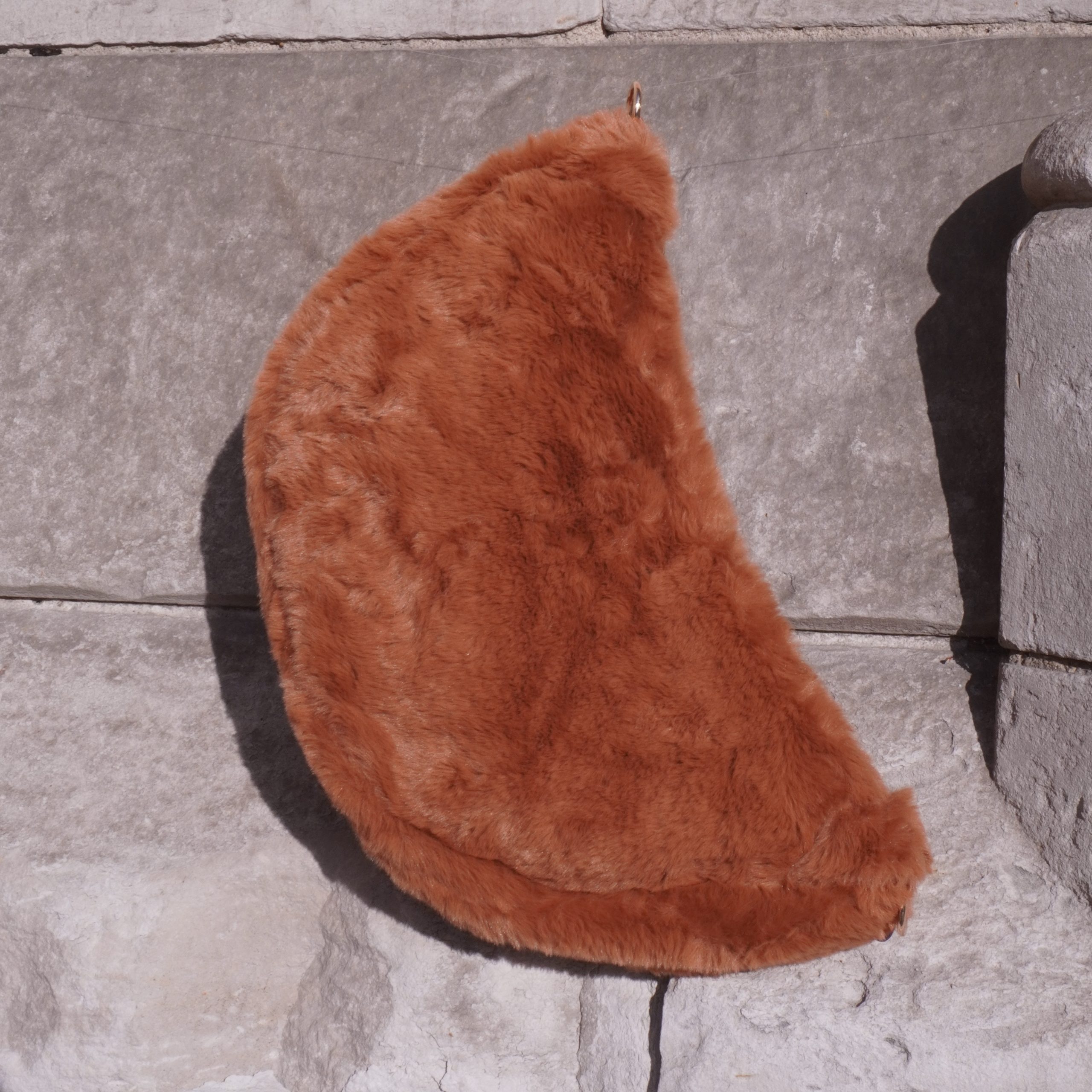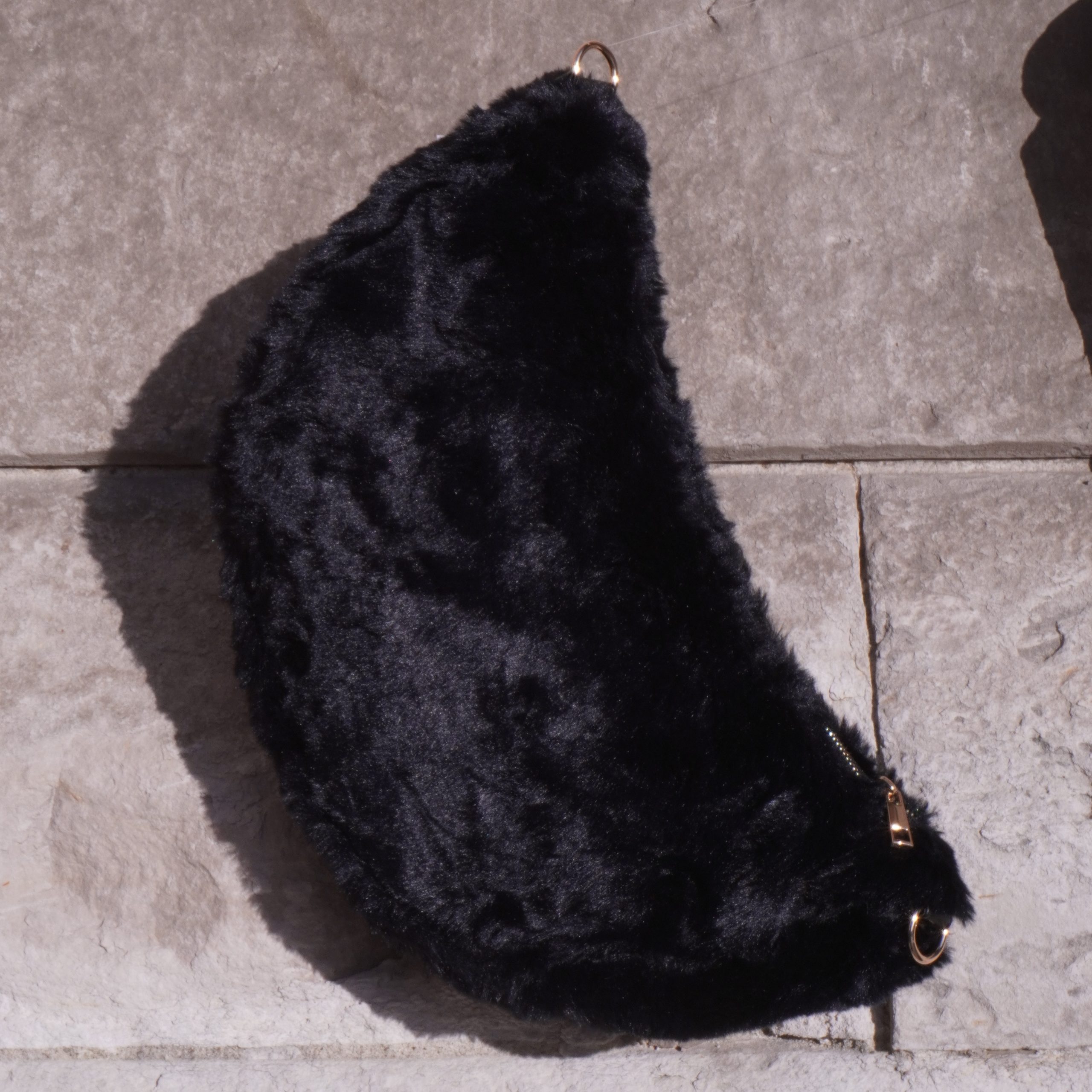 Sur l’épaule : Pour un style plus décontracté, positionnez vos Bananes en fourrure sur l’épaule comme un petit sac à main. L’effet doudou devient encore plus prononcé dans cette configuration.