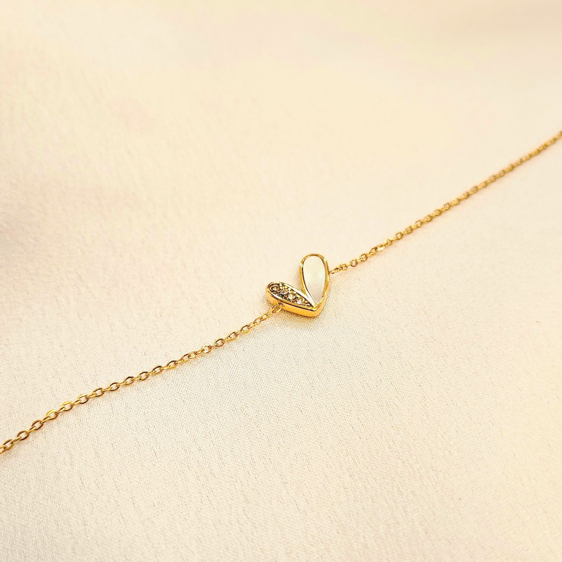 Bracelet acier inoxydable doré et cœur nacre