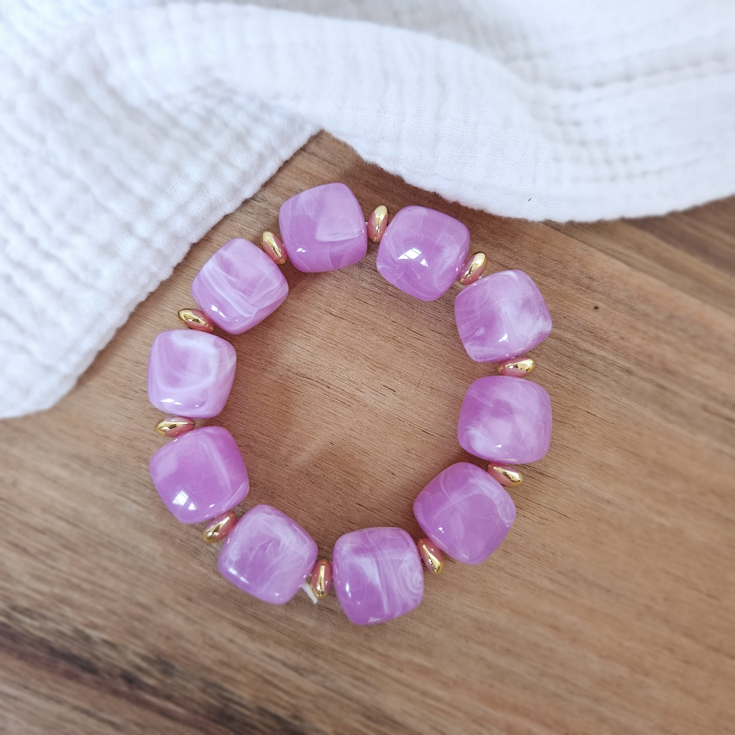 Apportez une touche de fraîcheur à vos tenues avec ce bracelet en perles carrées effet marbré, décliné dans de jolies couleurs de printemps.