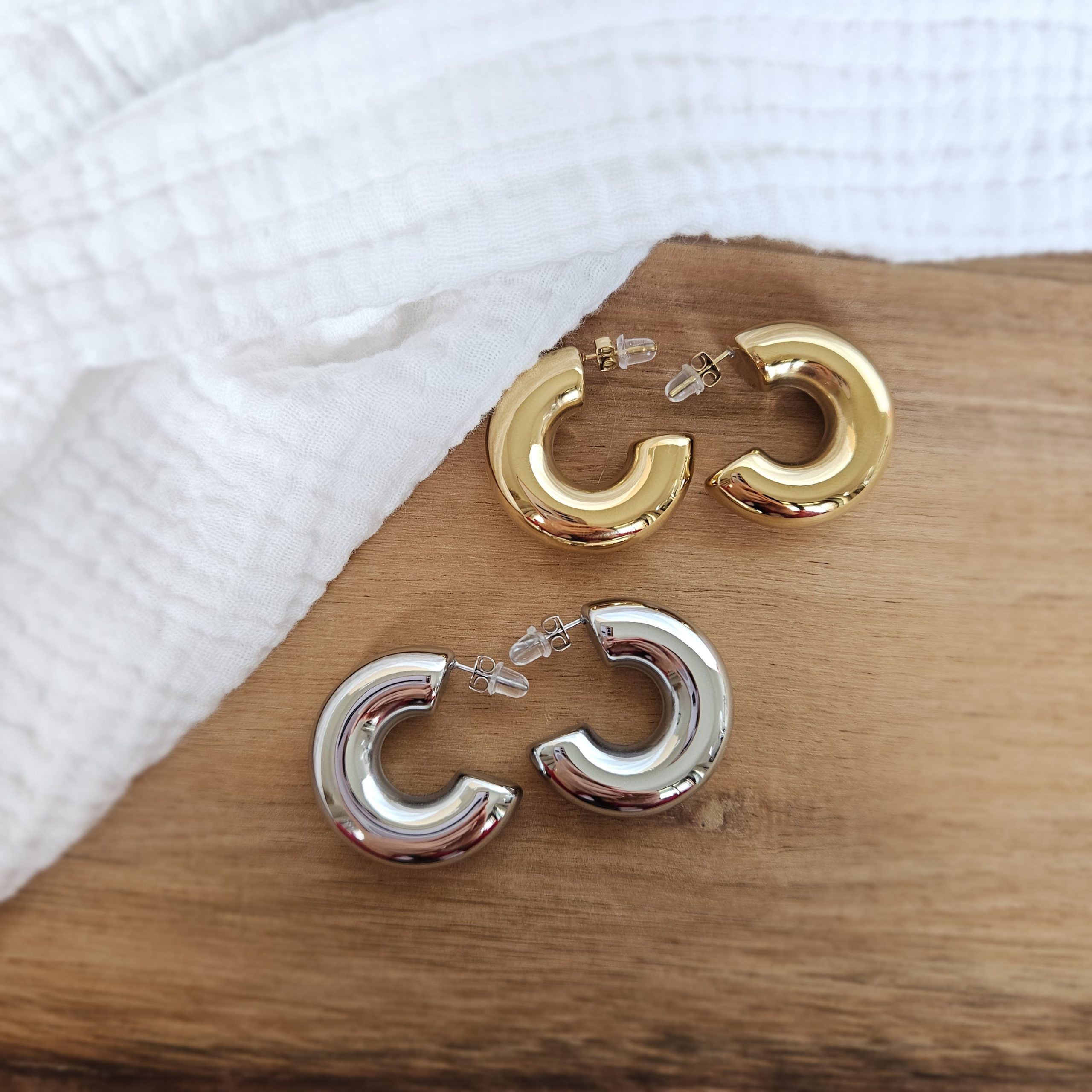 Retrouvez nos créoles épaisses, parfaites si vous souhaitez rester élégantes en portant des créoles, tout en gardant un esprit minimaliste mais imposant.
