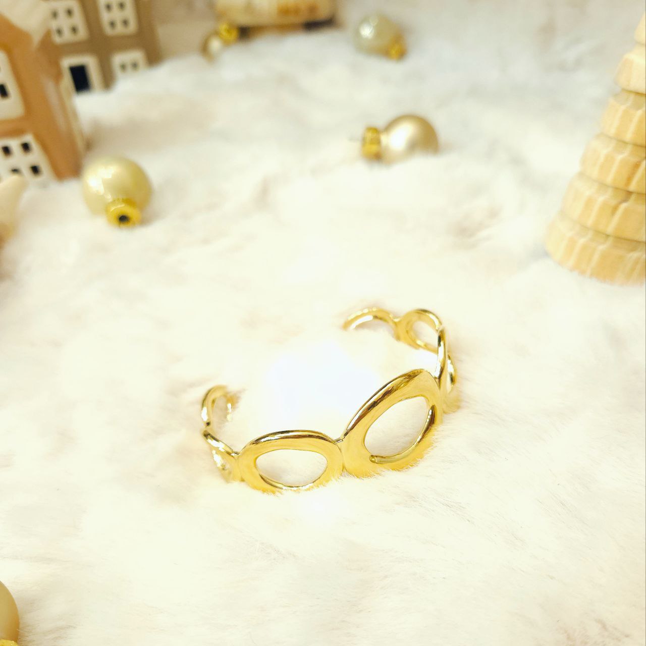 Une asymétrie harmonieuse : Loin de la rigidité des bracelets géométriques classiques, ce modèle joue sur l’asymétrie pour épouser les lignes naturelles du corps. Il apporte une touche de douceur organique qui contraste magnifiquement avec la dureté du métal.