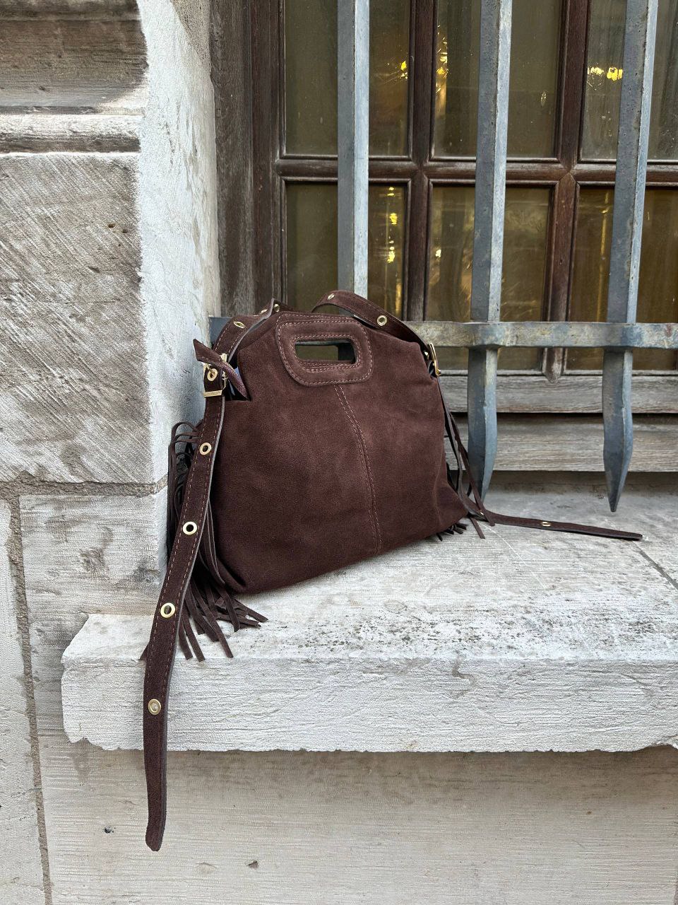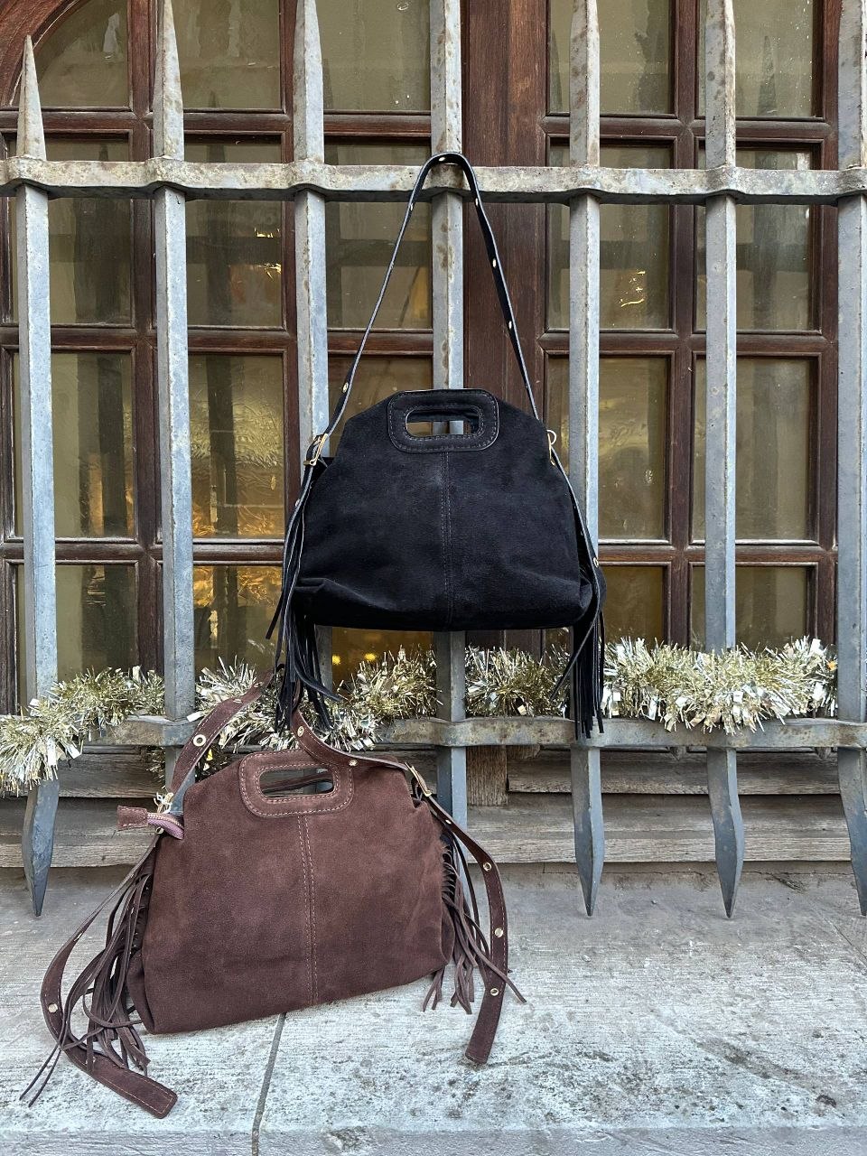 Le sac Lison grand format en cuir retourné est un modèle dont le style vous embellira. La douceur du daim, ses franges et son format spacieux vous séduiront pour longtemps.