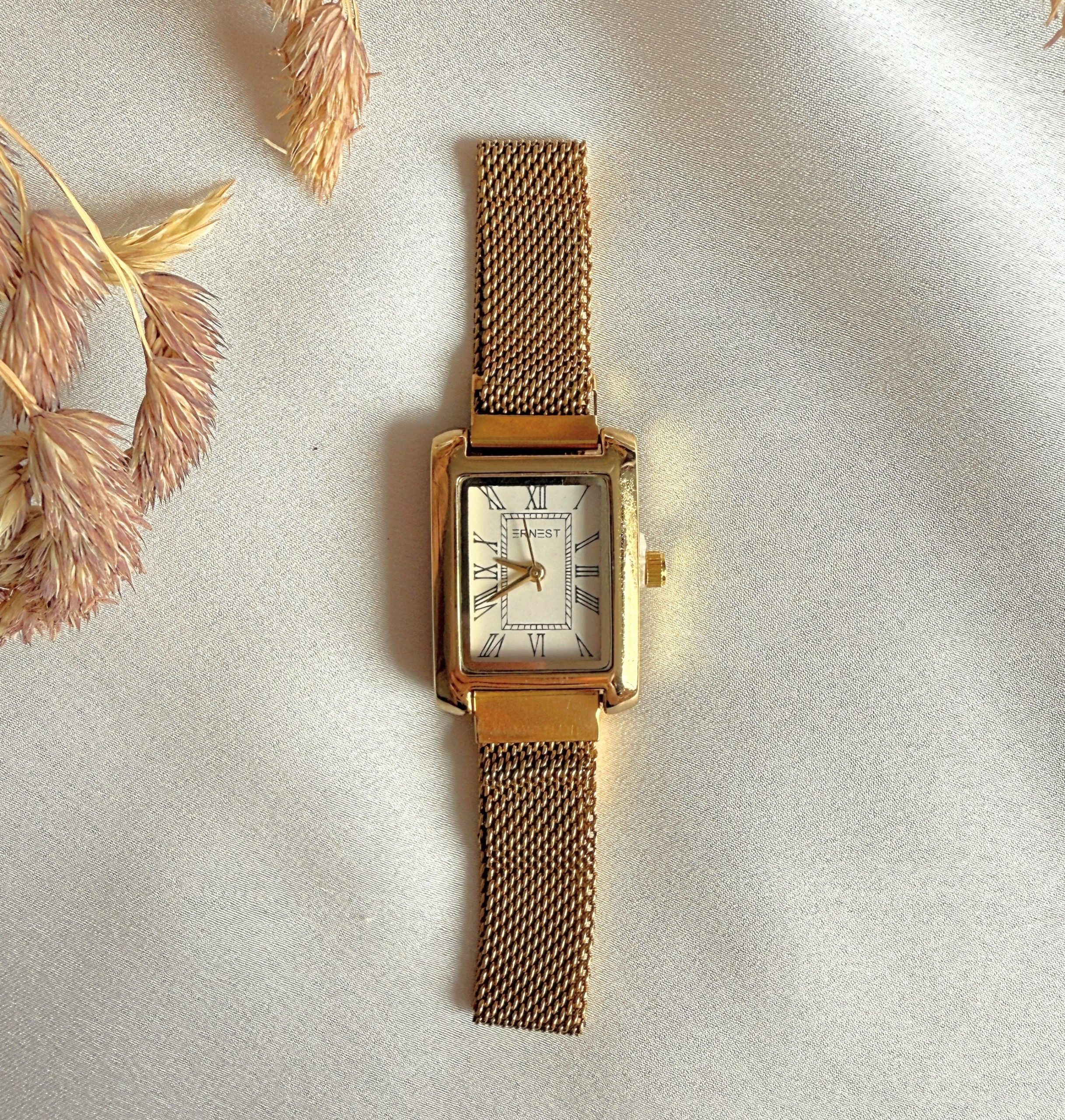 Montre rectangulaire maille milanaise