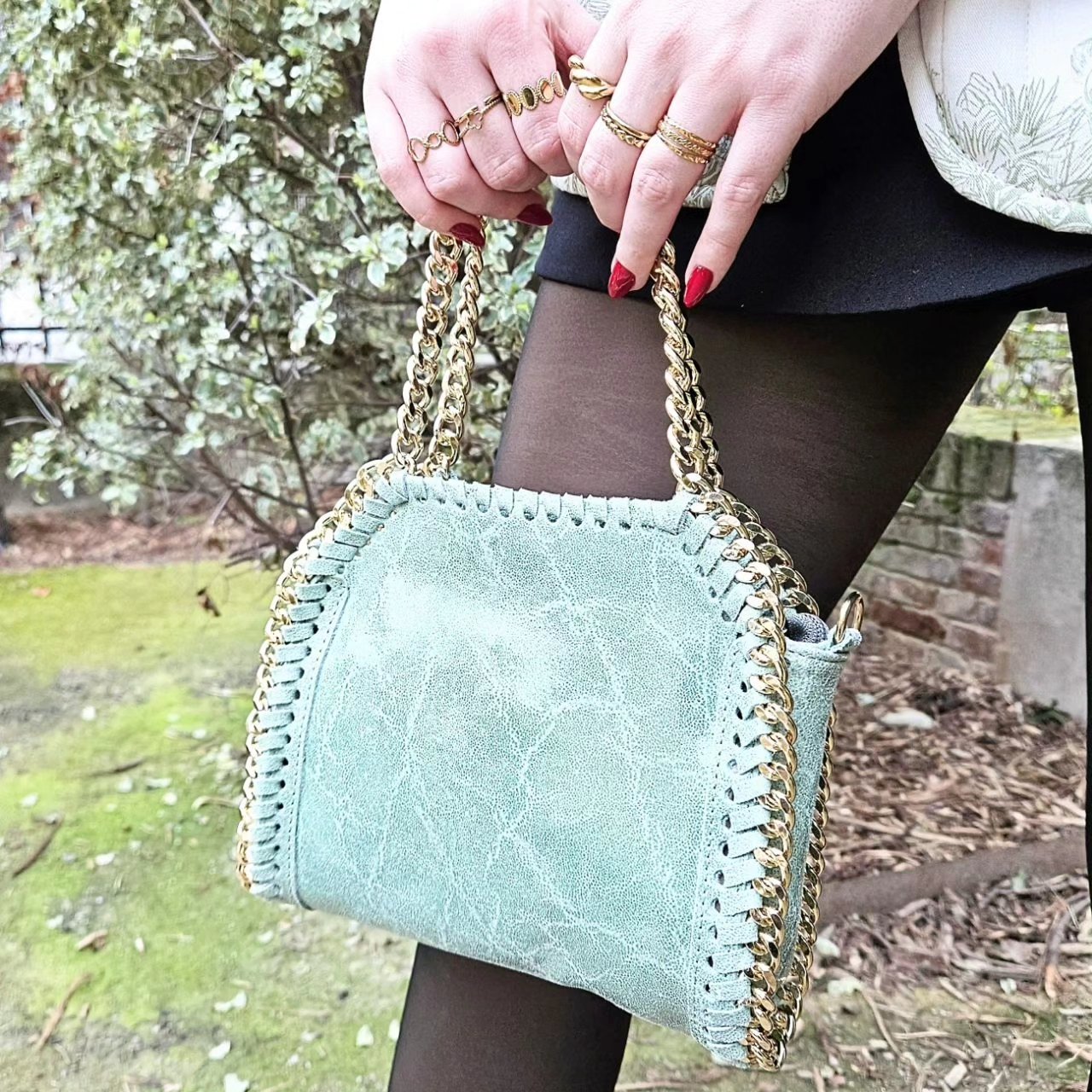 Avec sa petite poignée en mailles dorées, vous pourrez le porter à la main ou alors sur le côté grâce à sa bandoulière en mailles amovible !