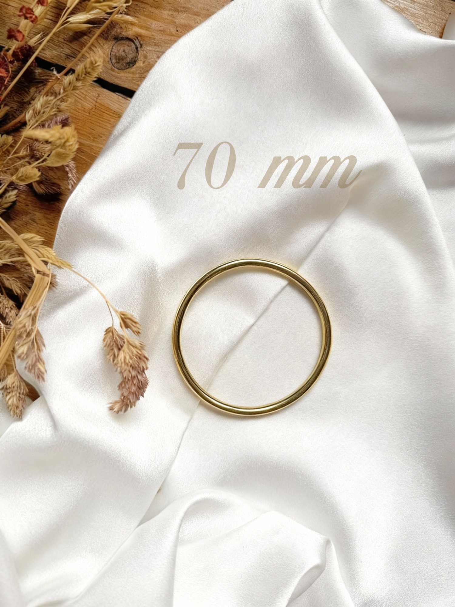 Disponibles en 60, 64 et 70 mm de diamètre, ces bracelets conviennent à la majorité des poignets et offrent un confort optimal tout au long de la journée. Le choix de la taille dépend de vos préférences personnelles : certaines préfèrent un ajustement serré qui maintient les joncs en place sans bouger, tandis que d’autres optent pour une taille légèrement supérieure permettant un mouvement plus libre et fluide.